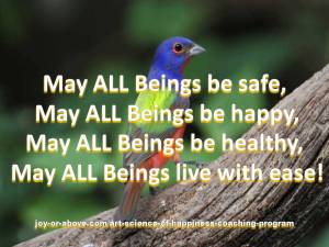 Step three: take a few more deep breaths. Take a minute to expand your love to include your neighbours, your city, your country and then the entire world: the Earth and all living beings. Imagine that all the people and all living beings of the world are happy. Hold your feeling as long as you can, and send them blessings. For example, you may say: