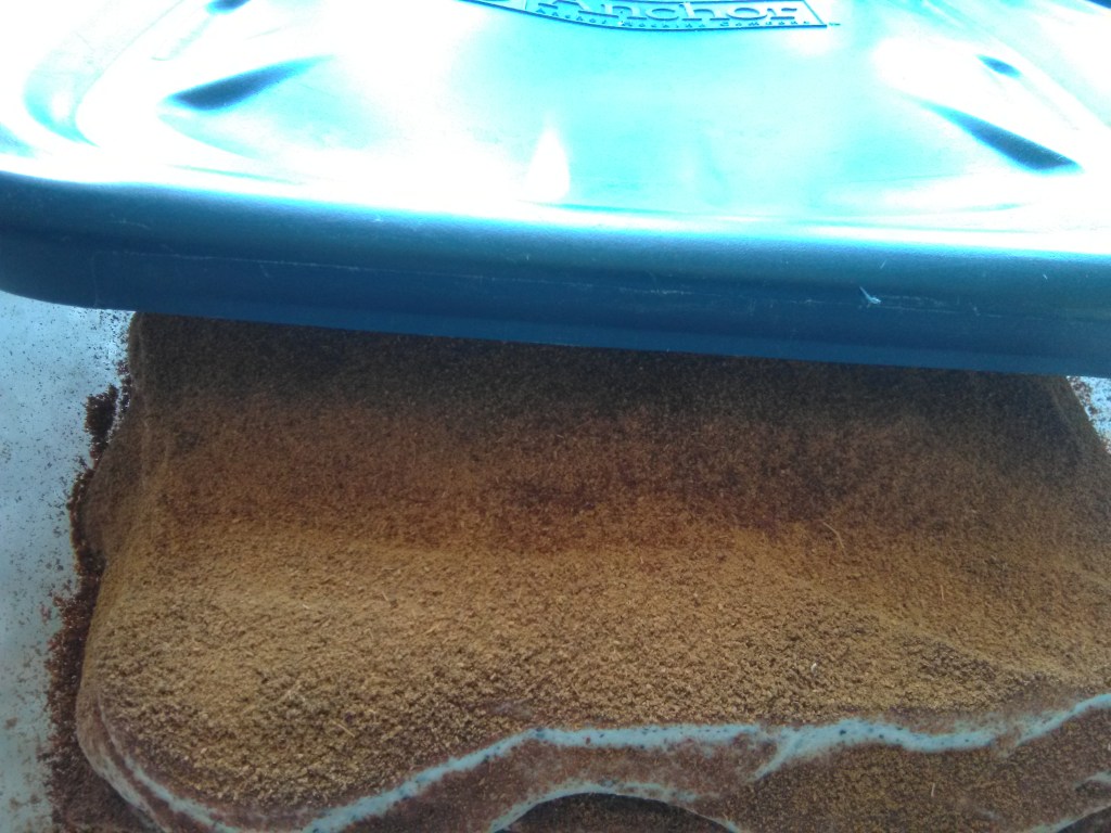 6. Sprinkle a thin layer of cacao powder, about 2 to 3 table spoons, over the cheese/cream layer. Then, sprinkle a little of cinnamon powder, if using, on top of the cacao layer.